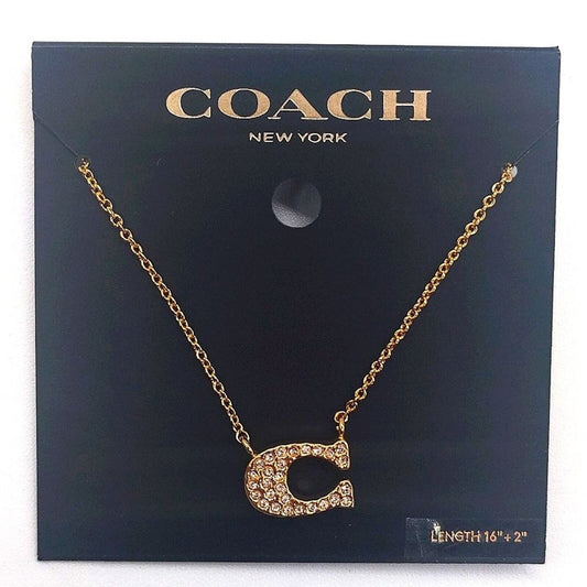 $88 Rare COACH Retired Gold Plated Pave Crystal C Logo Necklace