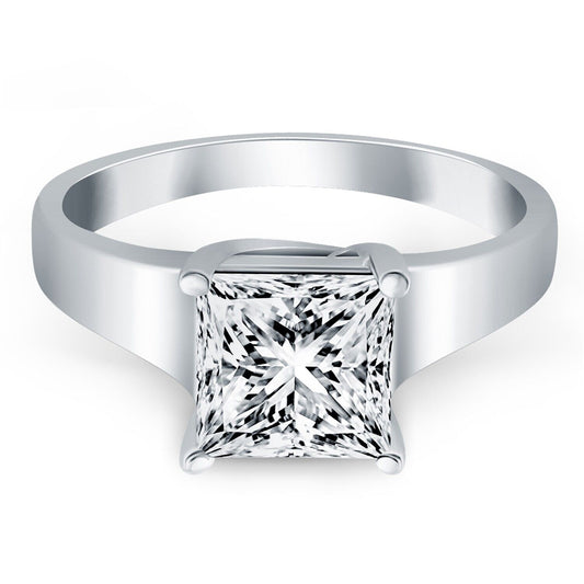 14k White Gold Princess Trellis Solitaire Engagement Ring Mounting