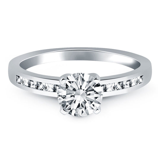 14k White Gold Princess Diamond Channel Set Engagement Ring Mounting