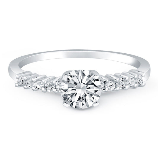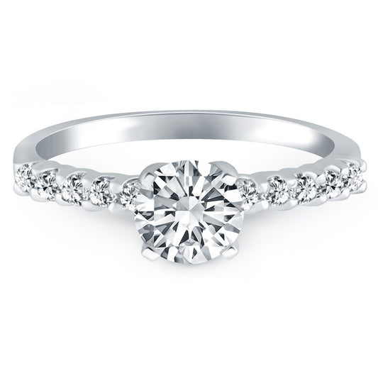 14k White Gold Shared Prong Accent Diamond Engagement Ring Mounting