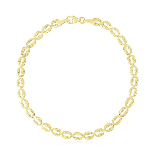 14k Yellow Gold High Polish Textured Puffed Oval Link Bracelet (3.8mm)