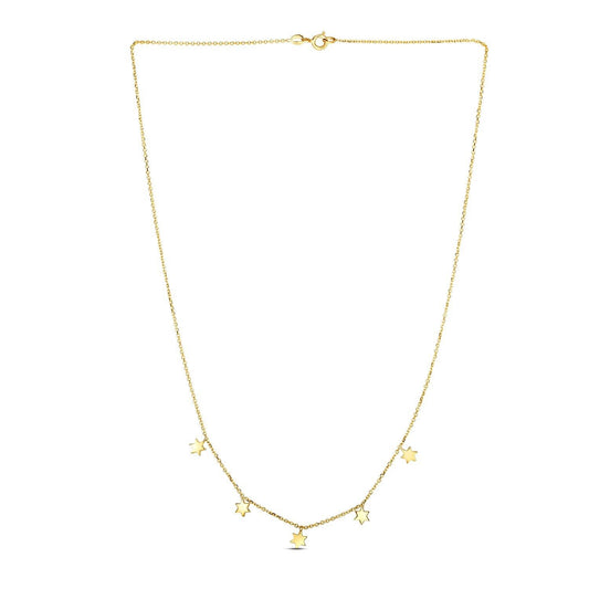 14k Yellow Gold Necklace with Polished and Textured Pebble Stations