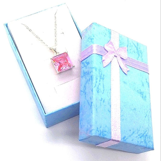 12MM Millennia Princess Cut Pink Cubic Zirconia Crystal 18" Pendant Necklace