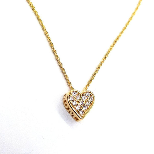 14K Gold Plated Sterling Silver Pave Cubic Zirconia Heart "MOM" Necklace .925