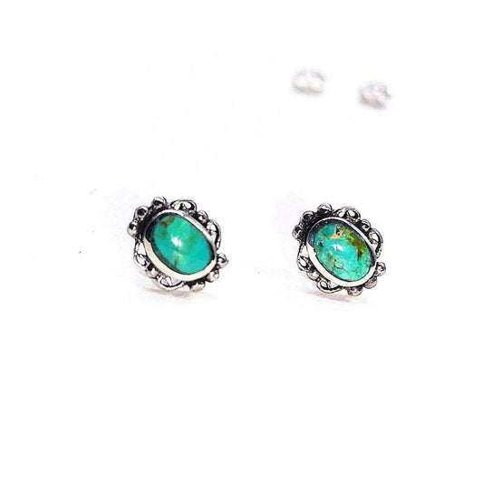 10MM Sterling Silver Oxidized Turquoise Bali Stud High Polished Earrings 925