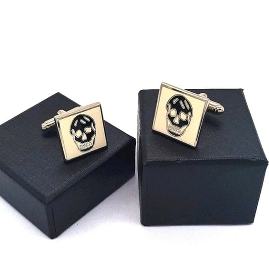 Alexander McQueen Vintage Black and White Enamel Skull Signed Square Cufflinks