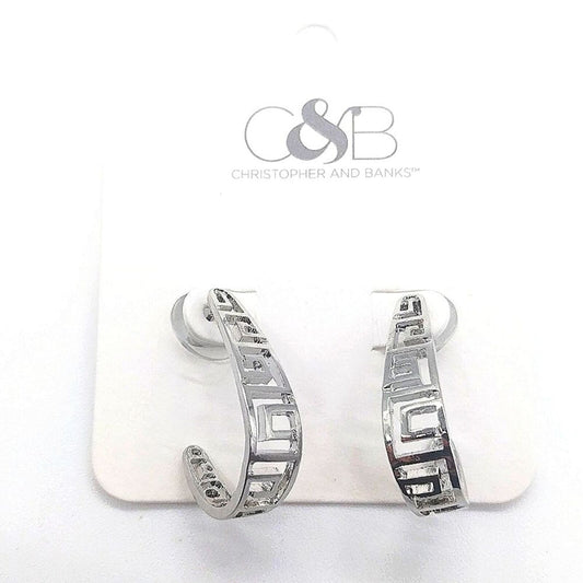 Christopher & Banks Silver Greek Dangle Drop Open J Hoop Earrings NWT