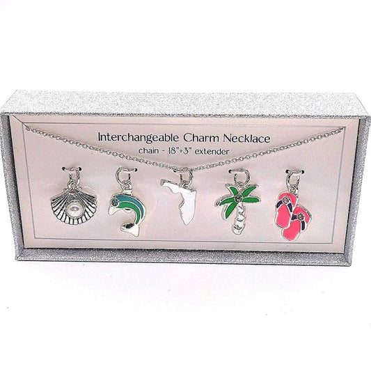 Bay Studio Silver 5 Interchangeable Pendant Necklace Florida Dolphin Palm Tree