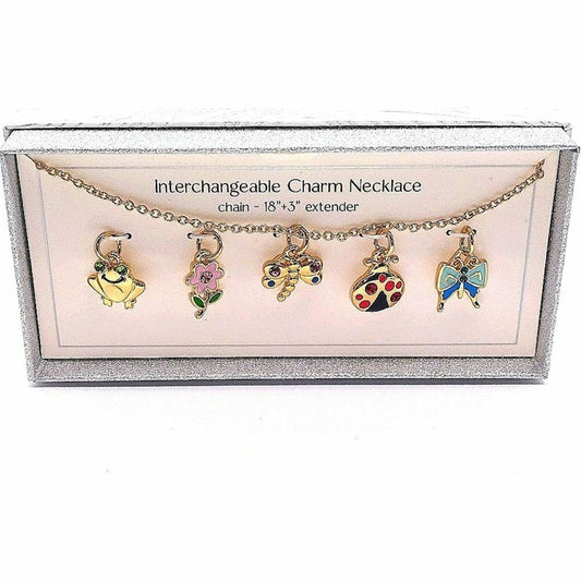 Bay Studio Gold 5 Interchangeable Pendant Necklace Lady Bug Frog FlowerButterfly