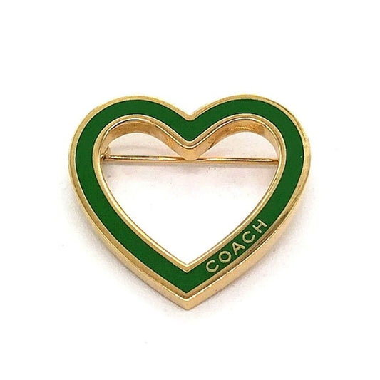 COACH Vintage Green Enamel Heart Pin Brooch in Gold Tone-Purse Backpack Charm