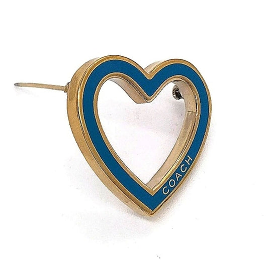 COACH Vintage Heart Pin Brooch in Sky Blue and Gold Tone Purse Backpack Charm