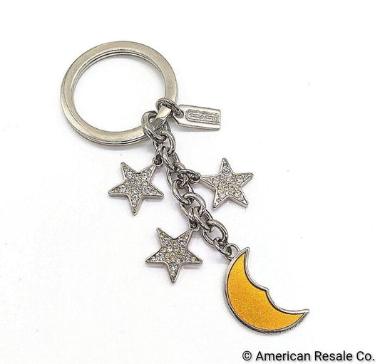 JUST IN-Vintage COACH Moon and Stars Pave Swarovski Crystal Keychain Purse Charm