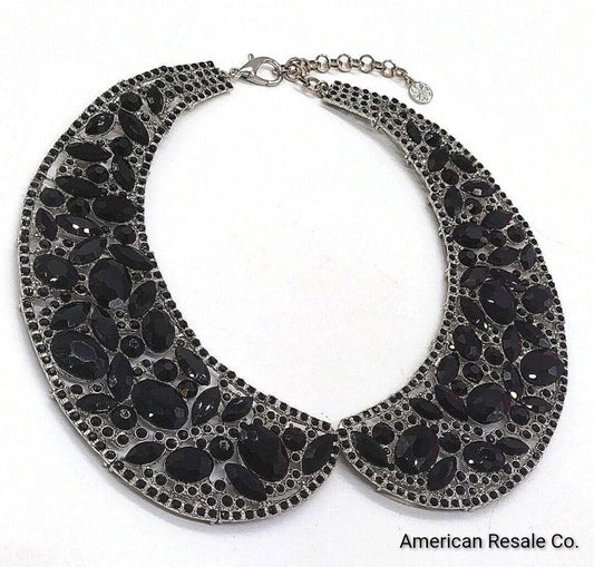 Isaac Mizrahi Live! Multishape 15" Black Crystal Collar Statement Necklace-QVC