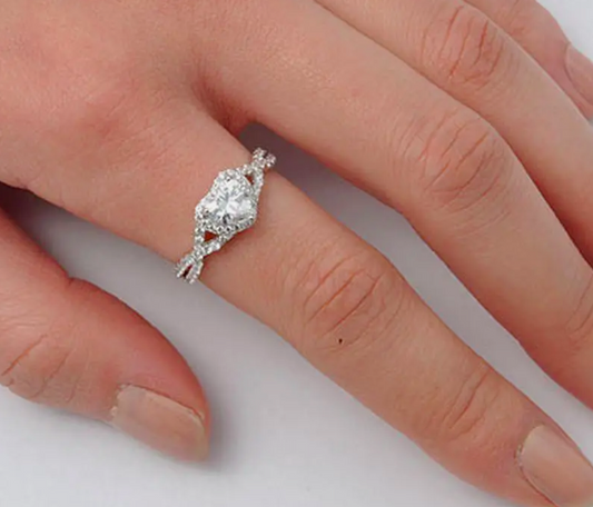 Heart Clear CZ Halo Promise Ring .925 Sterling Silver Infinity Band Sizes 4-13