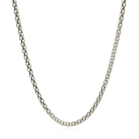 Rhodium Plated 2.5mm Sterling Silver Popcorn Style Chain