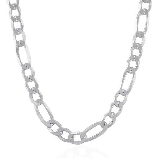 Rhodium Plated 11.6mm Sterling Silver Figaro Style Chain