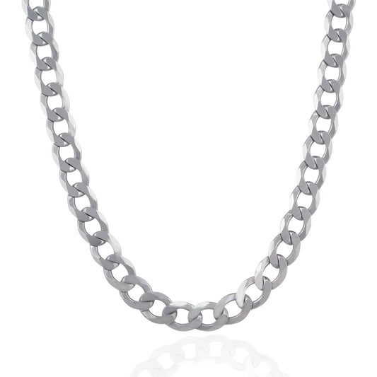 Rhodium Plated 7.9mm Sterling Silver Curb Style Chain