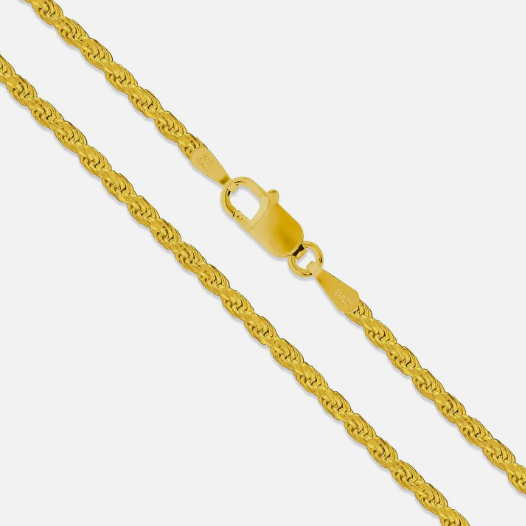 REAL 925 Sterling Silver 14KT Gold-Plated Diamond Cut Rope Chain ITALY