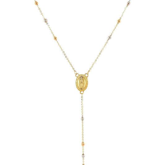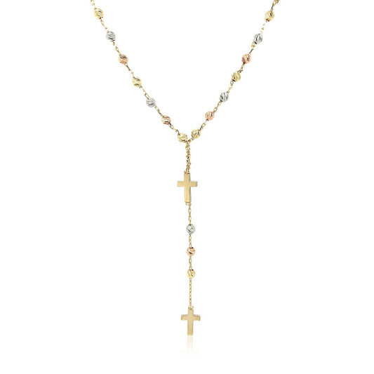 14k Tri-Color Gold Textured Bead Station Lariat Bracelet