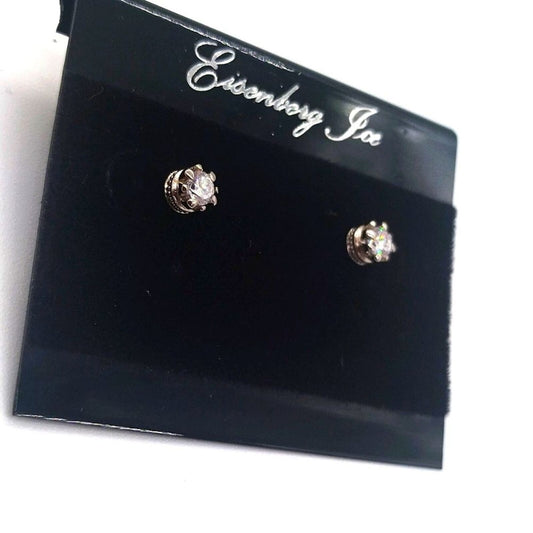 Vintage Eisenberg Ice 4MM Pave Cubic Zirconia Crystal Stud Earrings in Silver