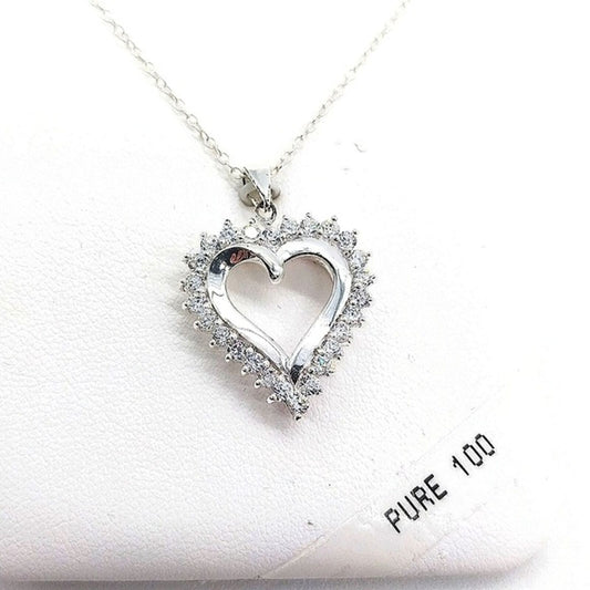 White Gold Vermeil Sterling silver .925 Heart with CZ Charm Necklace $99 Retail