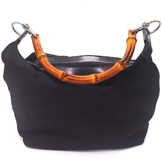 Vintage GUCCI Bamboo Shoulder Bag Canvas & Enamel Leather Authentic T18495