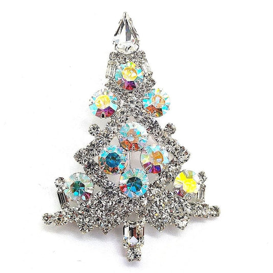 Vintage Signed Eisenberg Ice Christmas Tree Brooch Iridescent Rhinestones 3" Pin