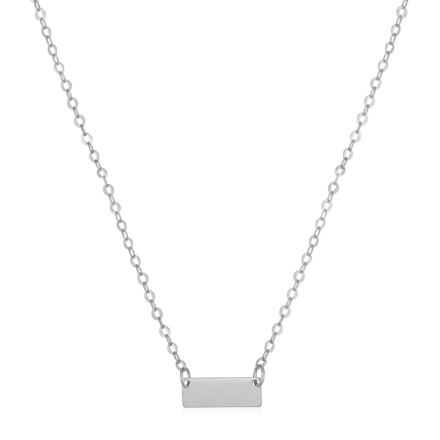 This brilliant 14k white gold necklace features a delicate, shiny gold bar. Necklace is 18 inches long.
